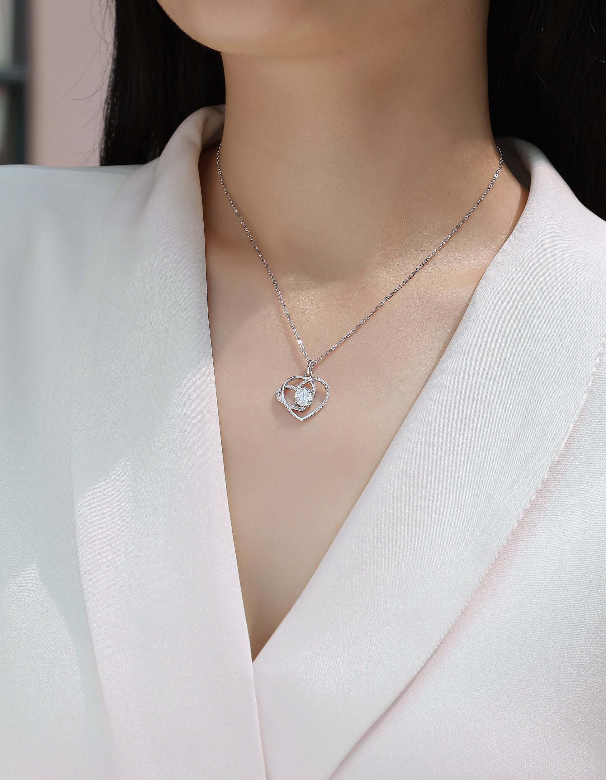 Heart-to-Heart Moissanite Pendant – 1-Carat Luxury Diamond Jewelry, S925 Silver, Platinum Plated